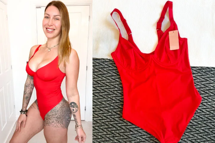 A shapewear brand that I personally love is FeelinGirl and their deep v-neck shapewear bodysuit which I have in red. The deep v-neck means that you can wear it under lower-cut tops without looking like you’re wearing clunky medical equipment, and I personally think that its beautiful enough to wear as a top in its own right.
